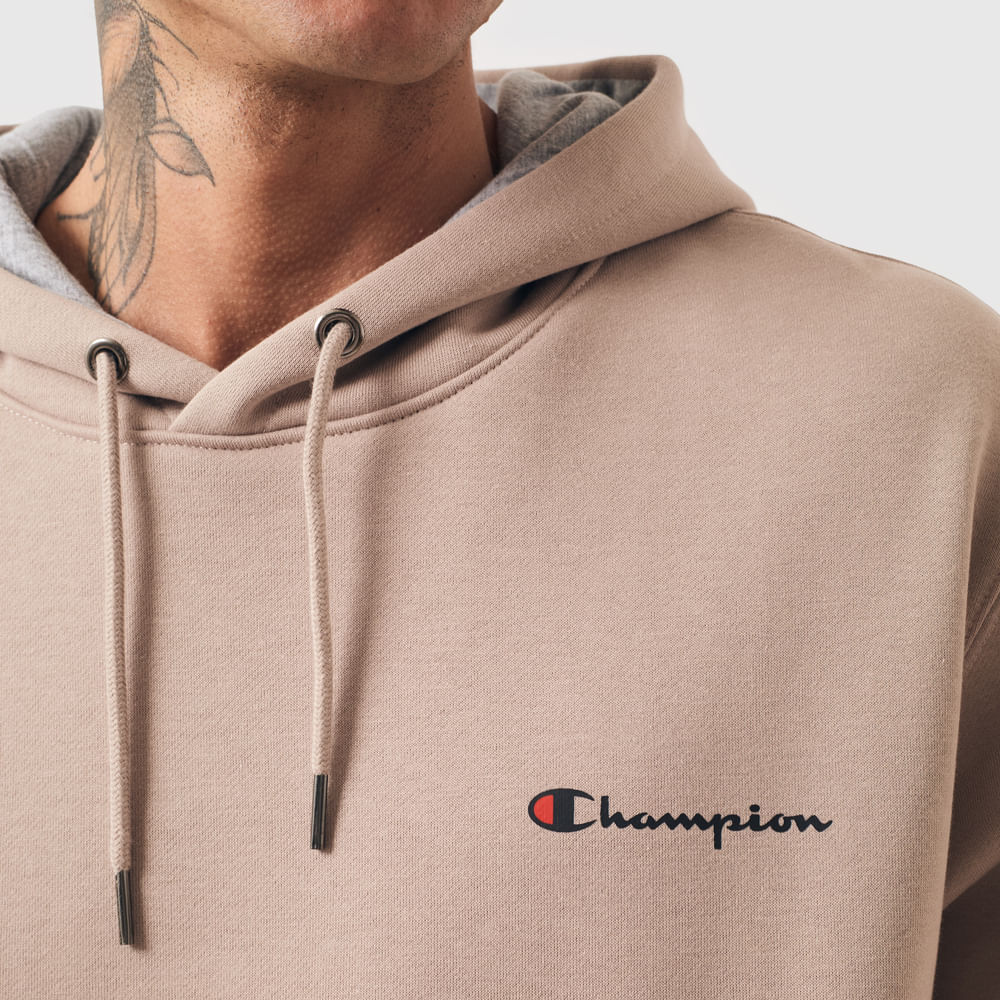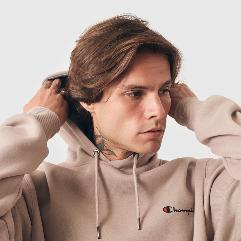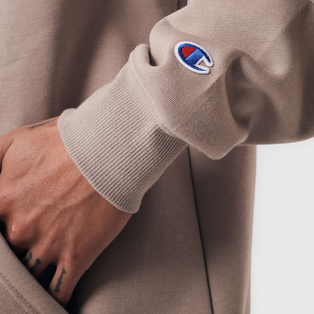 O moletom Champion possui modelagem regular da linha e é confeccionado em malha mista de algodão e poliéster com alta gramatura (310g). Conta com gola de 2.5cm e costuras reforçadas, que garantem durabilidade e resistência mesmo após diversas lavagens, além de proporcionar um visual alinhado. O logo é bordado no peito, e o icônico na manga assegura a autenticidade da peça, complementando seu design.