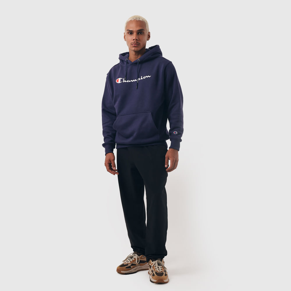 O moletom Champion possui modelagem regular da linha Life e é confeccionado em malha pesada de alta gramatura (390g). Conta com capuz reforçado e ilhós de metal, que garantem durabilidade e resistência mesmo após diversas lavagens, além de proporcionar um visual mais alinhado. O logo é bordado no peito, e o "C Patch" na manga garante a autenticidade e complementa o design da peça.