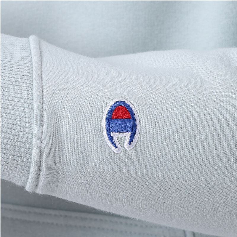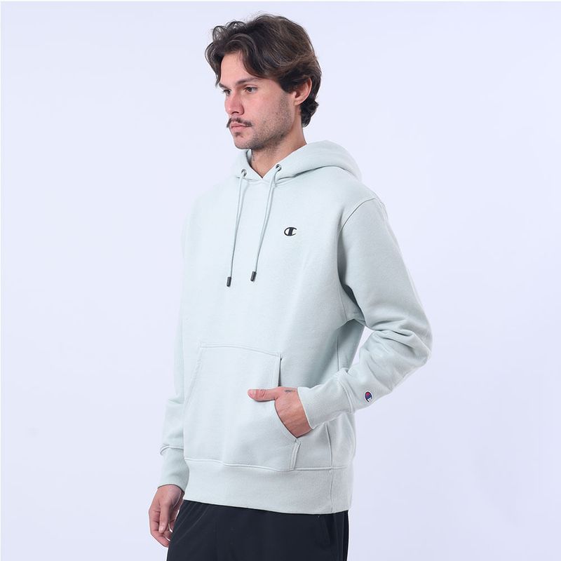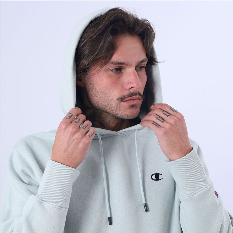 O moletom Champion possui modelagem regular da linha Life e é confeccionado em malha pesada de alta gramatura (390g). Conta com capuz reforçado e ilhós de metal, que garantem durabilidade e resistência mesmo após diversas lavagens, além de proporcionar um visual mais alinhado. O logo é bordado no peito, e o "C Patch" na manga garante a autenticidade e complementa o design da peça.
