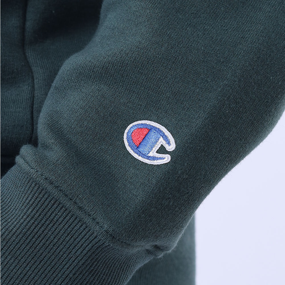 O moletom Champion possui modelagem regular da linha Athletic e é confeccionado em malha mista de algodão e poliéster com alta gramatura (320g). Conta com gola de 2.5cm e costuras reforçadas, que garantem durabilidade e resistência mesmo após diversas lavagens, além de proporcionar um visual alinhado. O logo é bordado no peito, e o icônico na manga assegura a autenticidade da peça, complementando seu design.