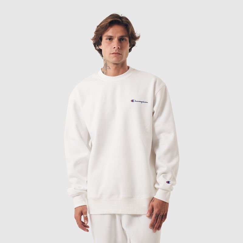 O moletom Champion possui modelagem regular da linha e é confeccionado em malha mista de algodão e poliéster com alta gramatura (310g). Conta com gola de 2.5cm e costuras reforçadas, que garantem durabilidade e resistência mesmo após diversas lavagens, além de proporcionar um visual alinhado. O logo em silk no peito, e o icônico na manga assegura a autenticidade da peça, complementando seu design.