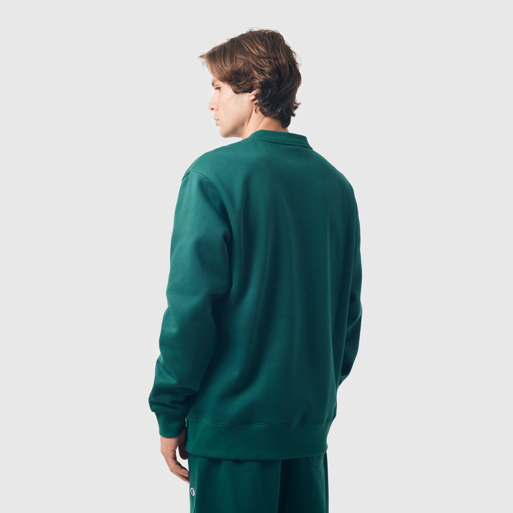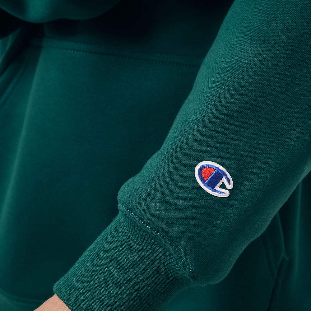O moletom Champion possui modelagem regular da linha e é confeccionado em malha mista de algodão e poliéster com alta gramatura (310g). Conta com gola de 2.5cm e costuras reforçadas, que garantem durabilidade e resistência mesmo após diversas lavagens, além de proporcionar um visual alinhado. O logo em silk no peito, e o icônico na manga assegura a autenticidade da peça, complementando seu design.