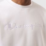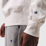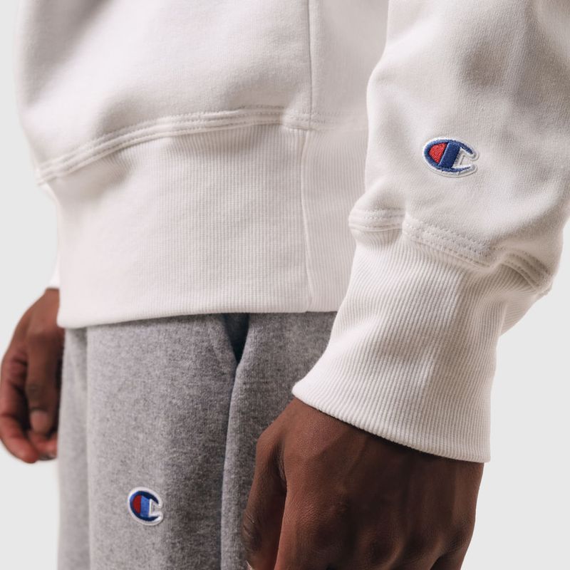 O moletom Champion possui modelagem regular da linha Life e é confeccionado em malha mista de algodão e poliéster com alta gramatura (390g). Conta com gola de 2.5cm e costuras reforçadas, que garantem durabilidade e resistência mesmo após diversas lavagens, além de proporcionar um visual alinhado. O logo é bordado no peito, e o icônico "C Patch" na manga assegura a autenticidade da peça, complementando seu design.