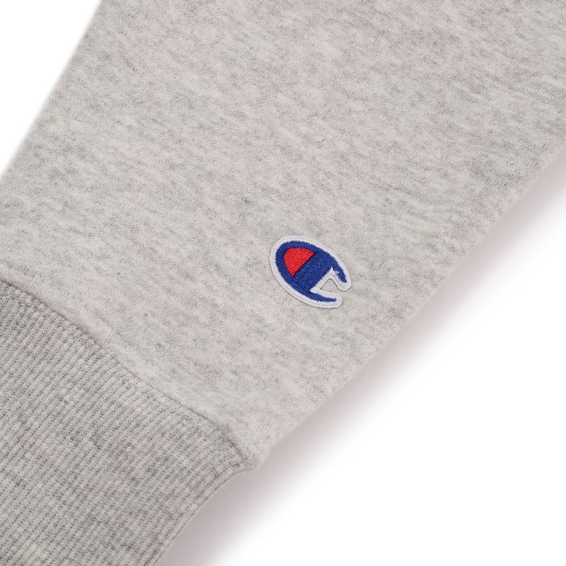 - Patch com logo Champion aplicado na manga.