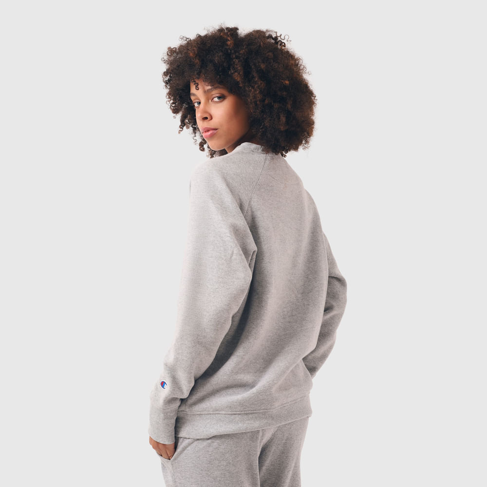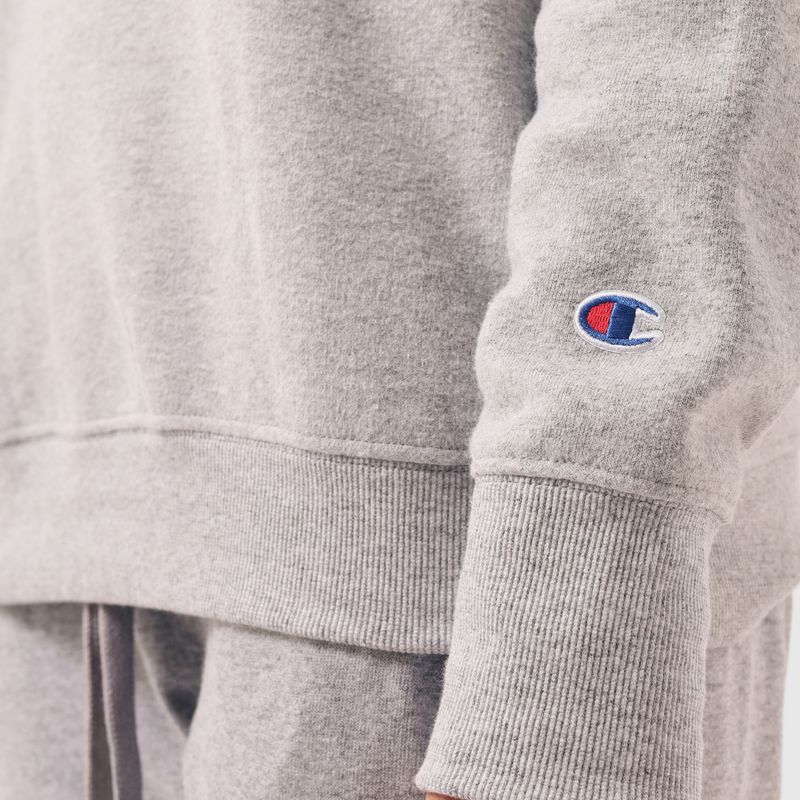 O moletom Champion possui modelagem regular da linha Athletic e é confeccionado em malha mista de algodão e poliéster com alta gramatura (320g). Conta com gola de 2.5cm e costuras reforçadas, que garantem durabilidade e resistência mesmo após diversas lavagens, além de proporcionar um visual alinhado. O logo é estampado em silk no peito, e o icônico "C Patch" na manga assegura a autenticidade da peça, complementando seu design.