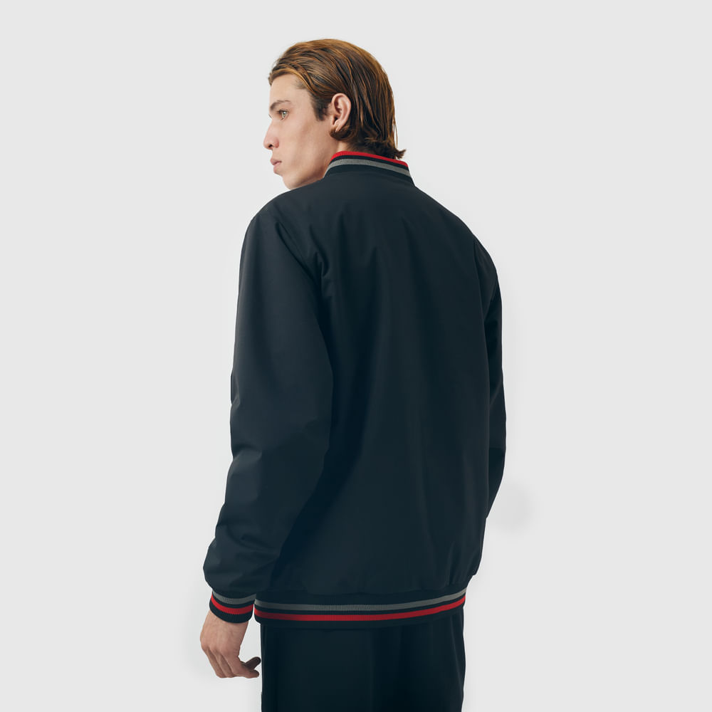 A jaqueta Bomber Champion possui modelagem regular da linha active e é confeccionado em poliéster. O logo é bordado no peito, e o icônico na manga assegura a autenticidade da peça, complementando seu design.