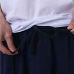 - Cintura Ajustável: Cós elástico com cordão interno para fixação personalizada e conforto garantido.