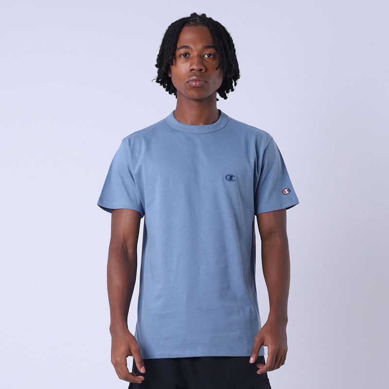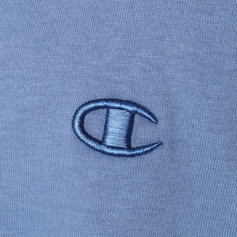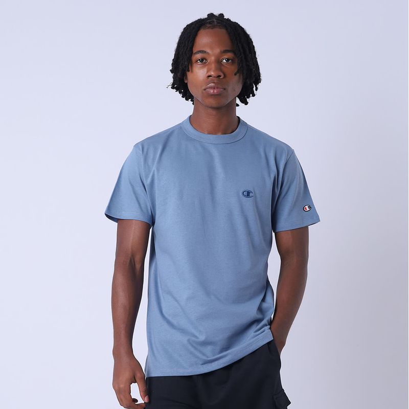 A camiseta Champion possui modelagem regular da linha Life, confeccionada em malha pesada de algodão com alta gramatura (250g). Sua gola sobreposta de 2,5 cm garante durabilidade e resistência mesmo após diversas lavagens, além de proporcionar um visual estruturado e alinhado. O logo vem bordado no peito, e o icônico aplicado lateralmente na manga assegura a autenticidade e complementa o design clássico da peça.