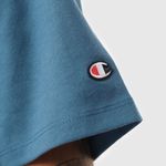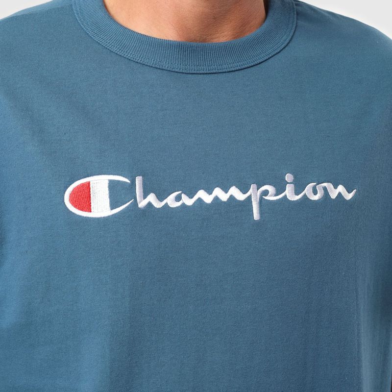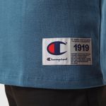 A camiseta Champion possui modelagem regular da linha Life, confeccionada em malha pesada de algodão com alta gramatura (250g). Sua gola sobreposta de 2,5 cm garante durabilidade e resistência mesmo após diversas lavagens, além de proporcionar um visual estruturado e alinhado. A estampa é bordada no peito, e o icônico "C Patch" aplicado lateralmente na manga assegura a autenticidade e complementa o design clássico da