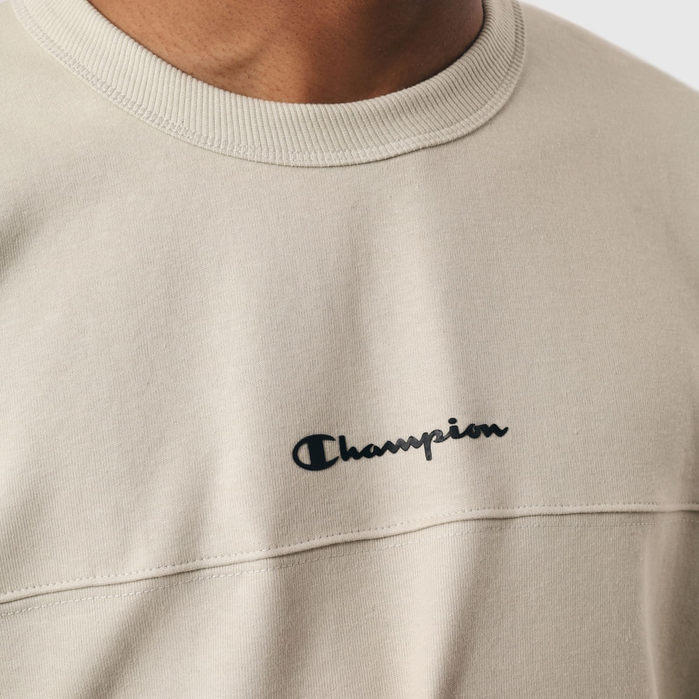 A camiseta Champion possui modelagem regular da linha Life, confeccionada em malha pesada de algodão com alta gramatura (250g). Sua gola sobreposta de 2,5 cm garante durabilidade e resistência mesmo após diversas lavagens, além de proporcionar um visual estruturado e alinhado. O logo vem aplicado no peito, e o icônico "C Patch" aplicado lateralmente na manga assegura a autenticidade e complementa o design clássico da peça.