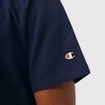 A camiseta Champion possui modelagem regular da linha Life, confeccionada em malha pesada de algodão com alta gramatura (250g). Sua gola sobreposta de 2,5 cm garante durabilidade e resistência mesmo após diversas lavagens, além de proporcionar um visual estruturado e alinhado. O logo vem bordado no peito, e o icônico "C Patch" aplicado lateralmente na manga assegura a autenticidade e complementa o design clássico da peça.