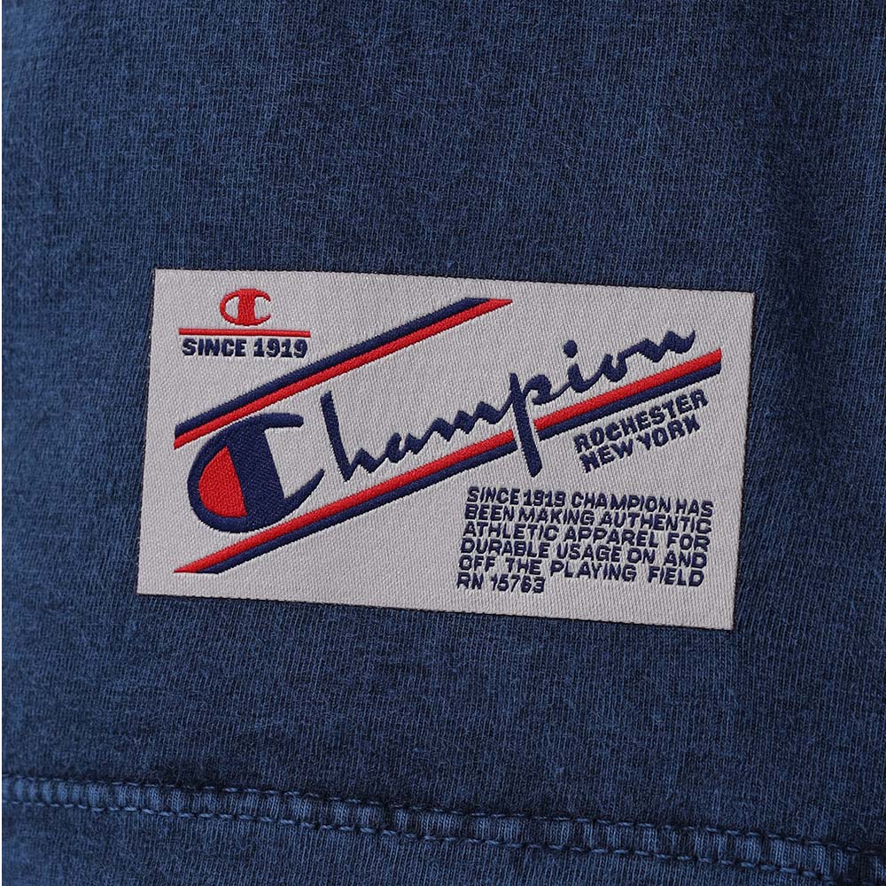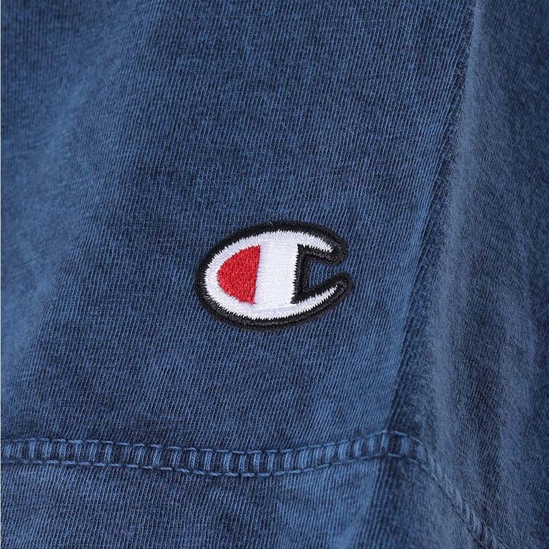 A camiseta Champion possui modelagem regular da linha Life, confeccionada em malha pesada de algodão com alta gramatura (250g). Sua gola sobreposta de 2,5 cm garante durabilidade e resistência mesmo após diversas lavagens, além de proporcionar um visual estruturado e alinhado. O logo vem bordado no peito, e o icônico " C Patch" aplicado lateralmente na manga assegura a autenticidade e complementa o design clássico da peça.