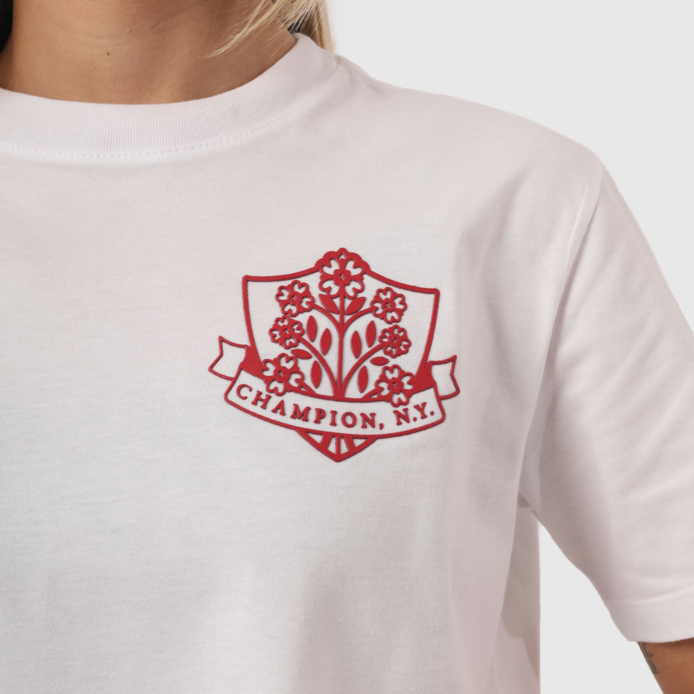 • Patch com logo Champion aplicado na manga.