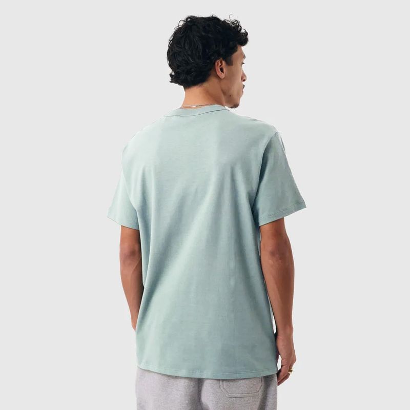 A camiseta Champion possui modelagem regular da linha Life, confeccionada em malha pesada de algodão com alta gramatura (250g). Sua gola sobreposta de 2,5 cm garante durabilidade e resistência mesmo após diversas lavagens, além de proporcionar um visual estruturado e alinhado. O logo vem bordado no peito, e o icônico "C Patch" aplicado lateralmente na manga assegura a autenticidade e complementa o design clássico da peça.