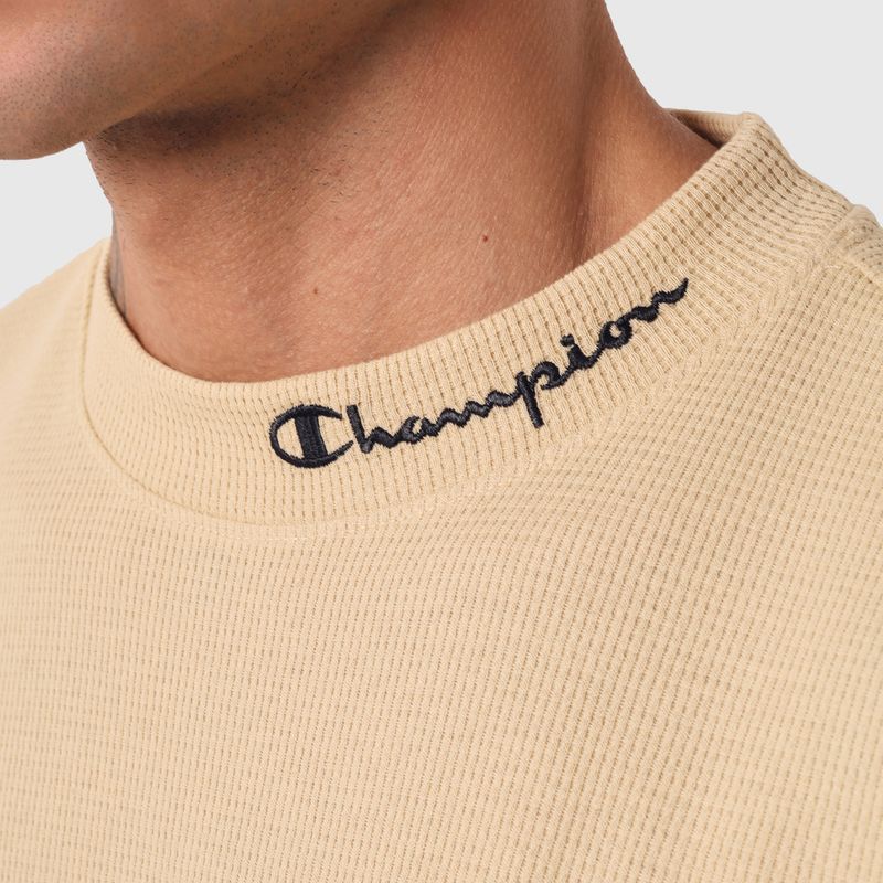 • Patch com logo Champion aplicado na manga.