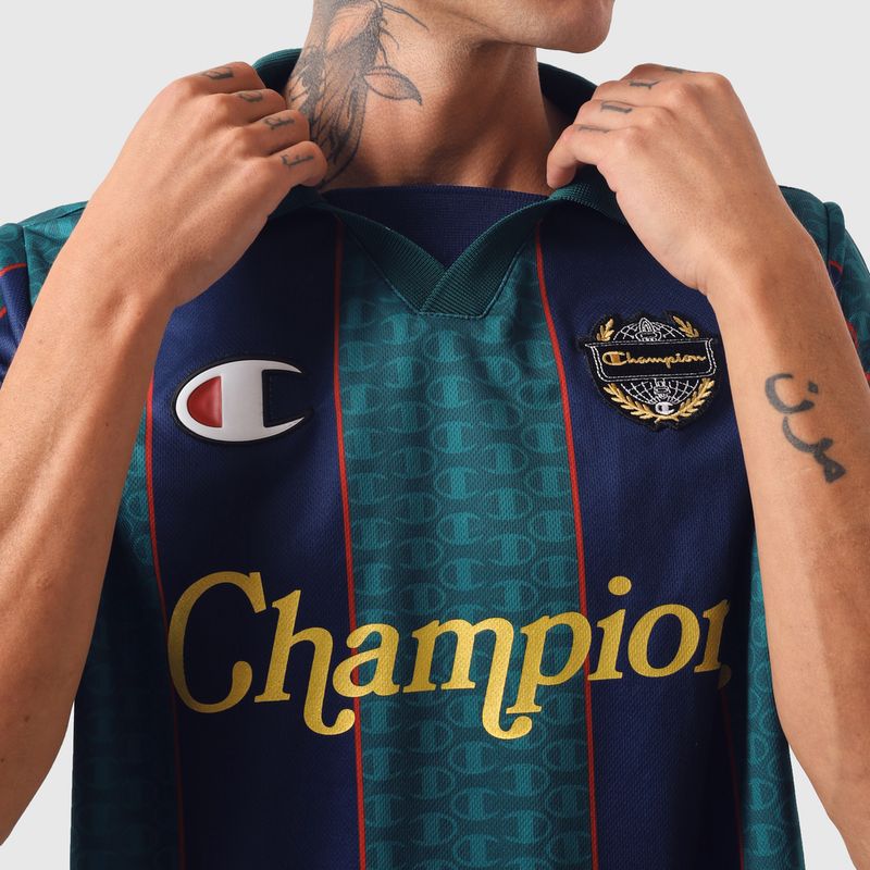 A camisa Jersey tem a modelagem regular da linha Life e é confeccionada em malha de poliéster leve, conta com gola polo e costuras reforçadas. A estampa frontal em patch destaca o Logo da Champion garantindo a autenticidade e complementando o design da peça.