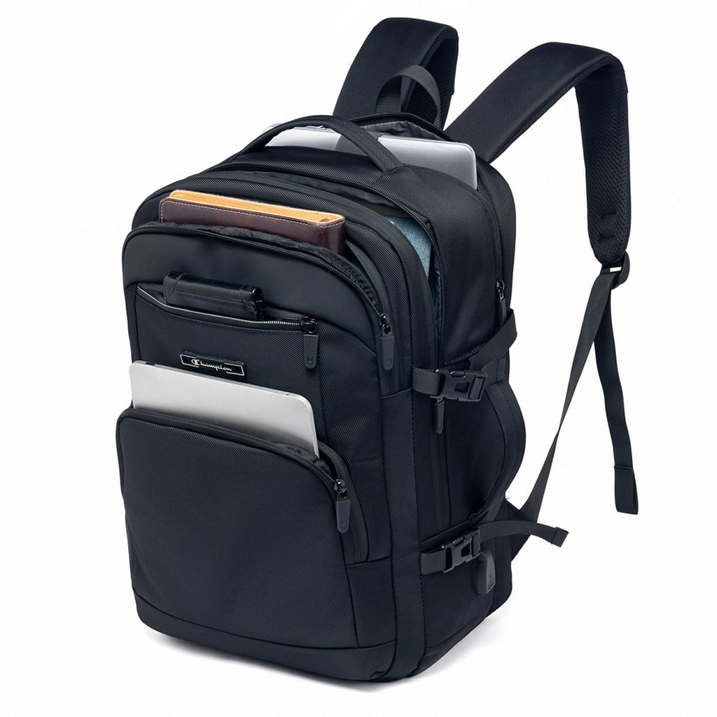 A mochila Champion apresenta um design moderno com diversas divisórias frontais, destacada por detalhes vibrantes. Confeccionada em poliéster resistente e com estrutura reforçada, garante maior durabilidade e segurança no uso diário. Possui zíper frontal, zíper superior horizontal e puxadores personalizados, além de um bolso com fechamento em zíper, ideal para guardar pequenos objetos. Nas laterais, conta com bolsos auxiliares, perfeitos para garrafas, guarda-chuvas e itens de acesso rápido. Na parte traseira, o modelo oferece alças acolchoadas e ajustáveis, proporcionando mais conforto e ergonomia ao longo do dia.