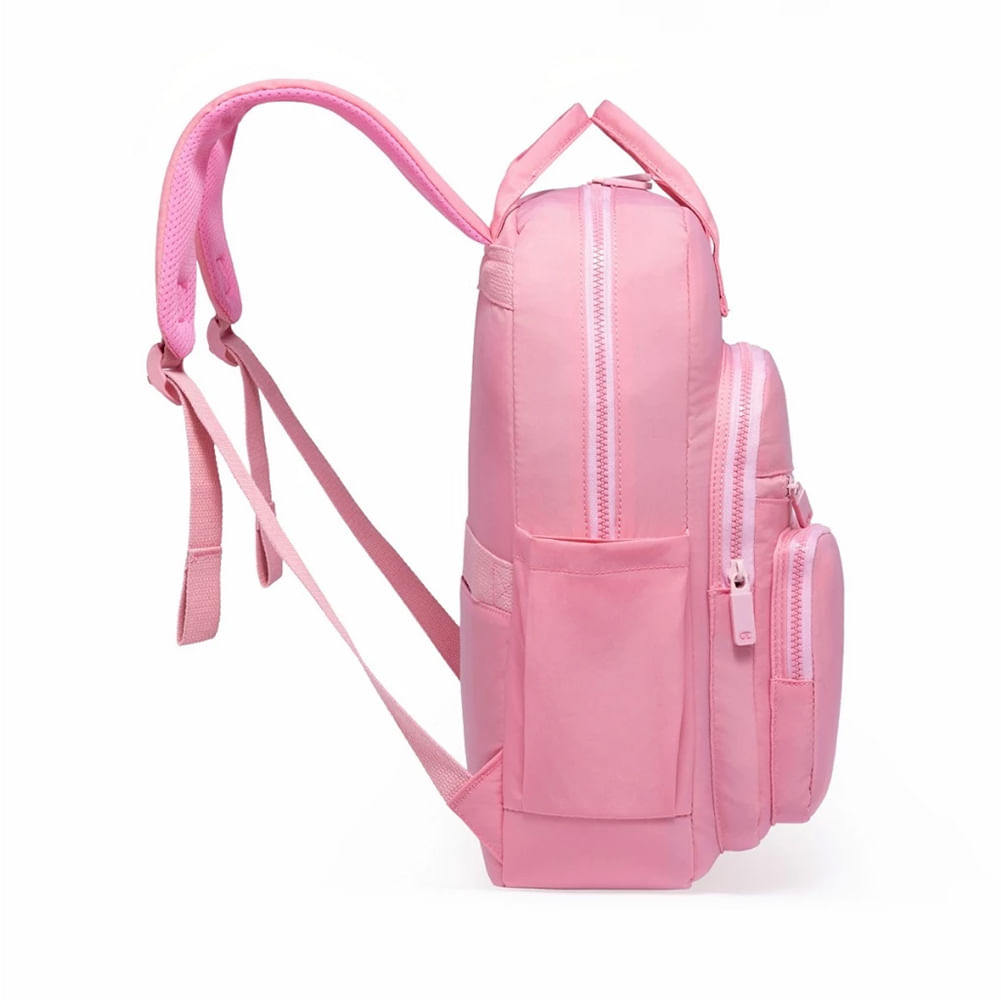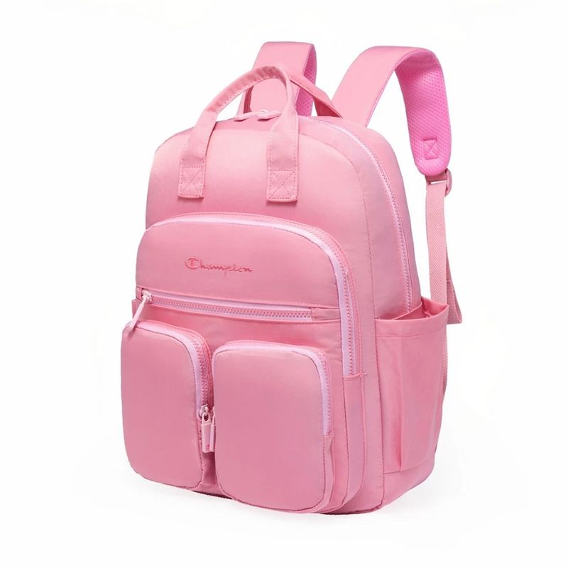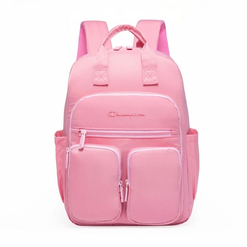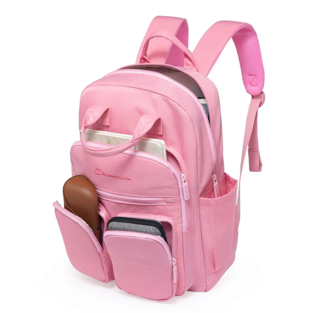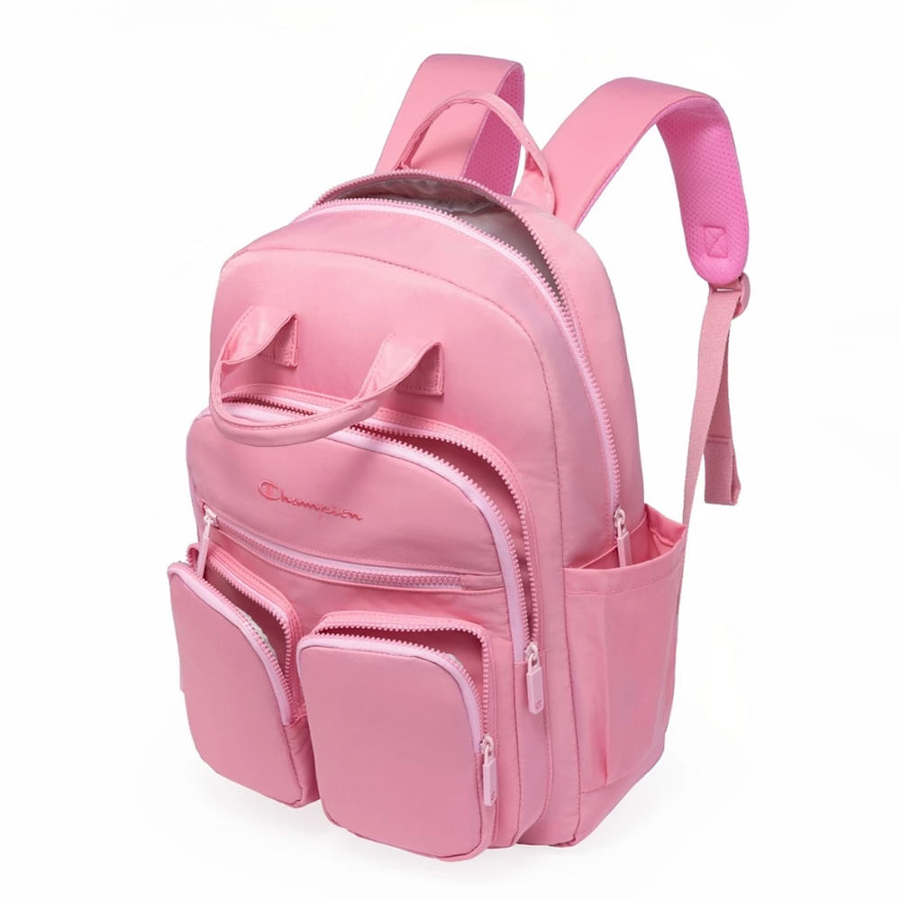 A mochila Champion apresenta um design moderno com diversas divisórias frontais, destacada por detalhes vibrantes em Rosa. Confeccionada em poliéster resistente e com estrutura reforçada, garante maior durabilidade e segurança no uso diário. Possui zíper frontal, zíper superior horizontal e puxadores personalizados, além de um bolso com fechamento em zíper, ideal para guardar pequenos objetos. Nas laterais, conta com bolsos auxiliares, perfeitos para garrafas, guarda-chuvas e itens de acesso rápido. Na parte traseira, o modelo oferece alças acolchoadas e ajustáveis, proporcionando mais conforto e ergonomia ao longo do dia.
