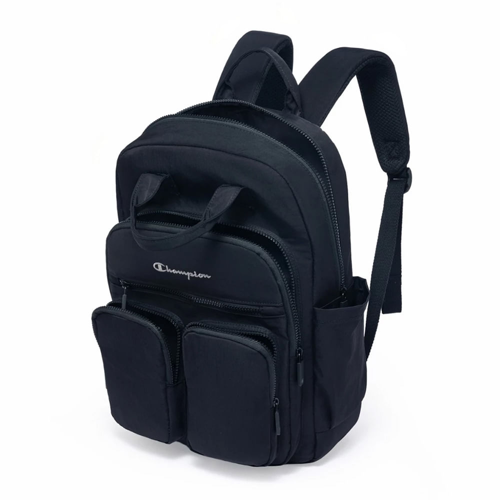 A mochila Champion apresenta um design moderno com diversas divisórias frontais, destacada por detalhes vibrantes. Confeccionada em poliéster resistente e com estrutura reforçada, garante maior durabilidade e segurança no uso diário. Possui zíper frontal, zíper superior horizontal e puxadores personalizados, além de um bolso com fechamento em zíper, ideal para guardar pequenos objetos. Nas laterais, conta com bolsos auxiliares, perfeitos para garrafas, guarda-chuvas e itens de acesso rápido. Na parte traseira, o modelo oferece alças acolchoadas e ajustáveis, proporcionando mais conforto e ergonomia ao longo do dia.