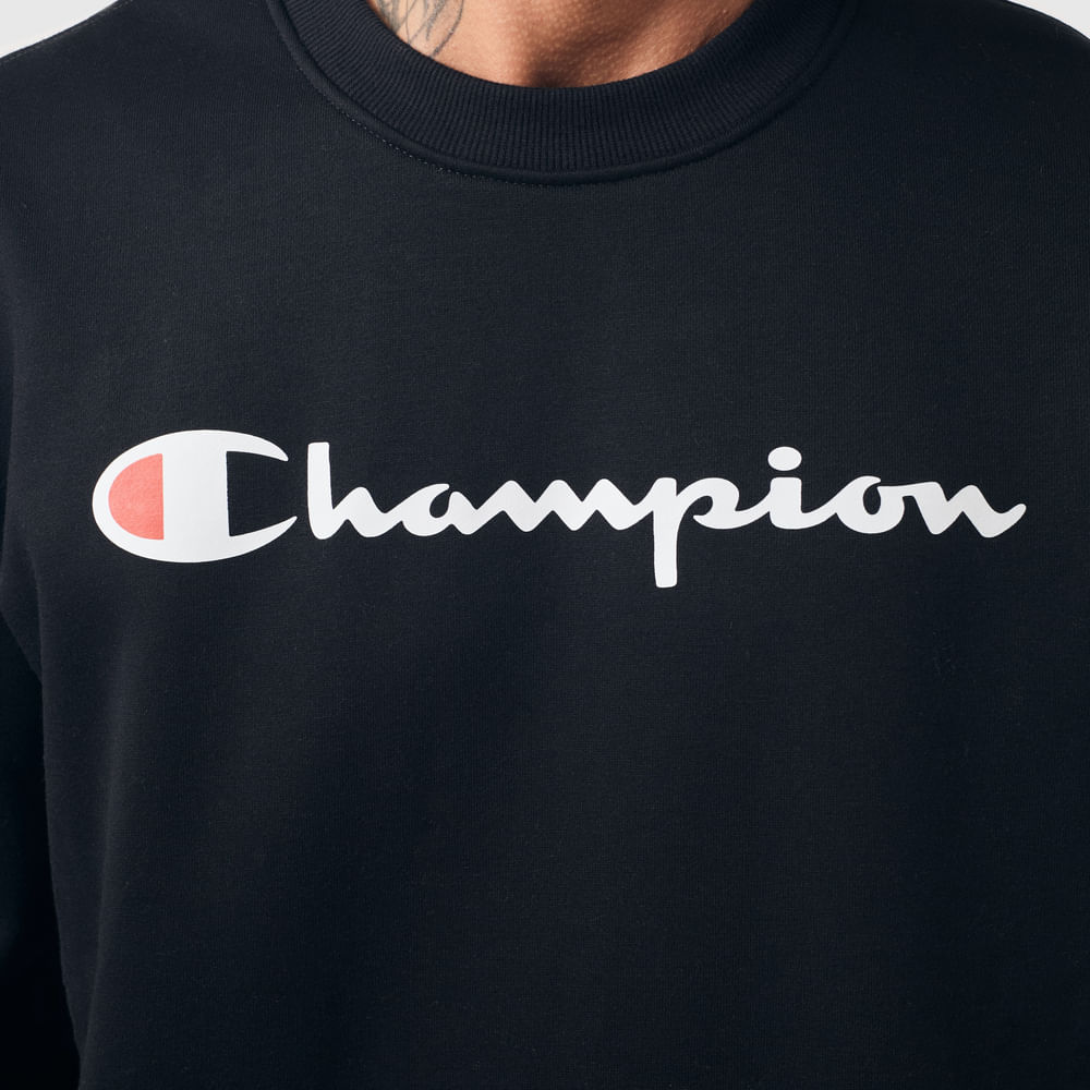 O moletom Champion possui modelagem regular da linha Athletic e é confeccionado em malha mista de algodão e poliéster com alta gramatura (320g). Conta com gola de 2.5cm e costuras reforçadas, que garantem durabilidade e resistência mesmo após diversas lavagens, além de proporcionar um visual alinhado. O logo é estampado em silk no peito, e o icônico "C Patch" na manga assegura a autenticidade da peça, complementando seu design.