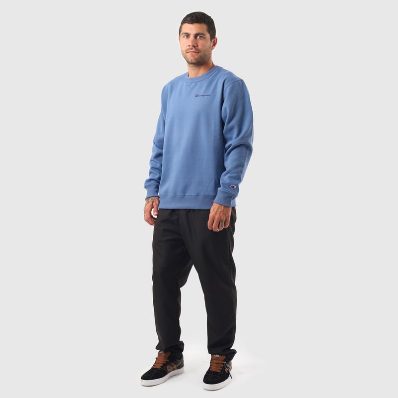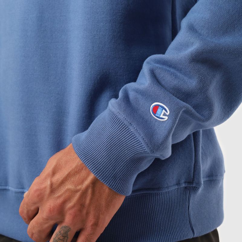 O moletom Champion possui modelagem regular da linha Athletic e é confeccionado em malha mista de algodão e poliéster com alta gramatura (320g). Conta com gola de 2.5cm e costuras reforçadas, que garantem durabilidade e resistência mesmo após diversas lavagens, além de proporcionar um visual alinhado. O logo é estampado em silk no peito, e o icônico "C Patch" na manga assegura a autenticidade da peça, complementando seu design.