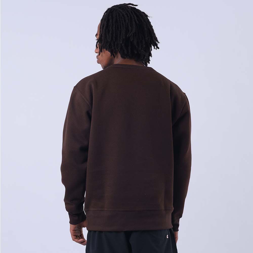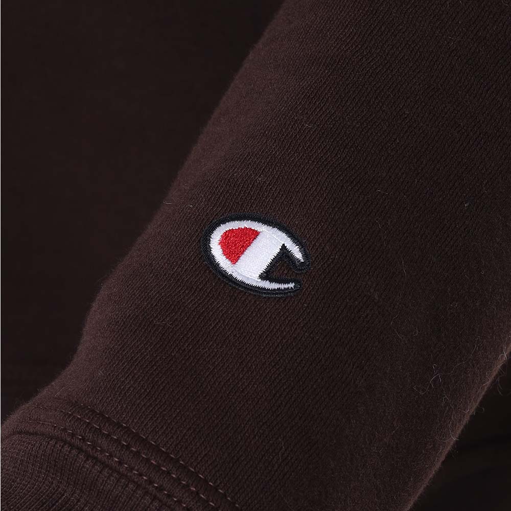 O moletom Champion possui modelagem regular da linha Life e é confeccionado em malha mista de algodão e poliéster com alta gramatura (390g). Conta com gola de 2.5cm e costuras reforçadas, que garantem durabilidade e resistência mesmo após diversas lavagens, além de proporcionar um visual alinhado. O logo é bordado no peito, e o icônico "C Patch" na manga assegura a autenticidade da peça, complementando seu design.