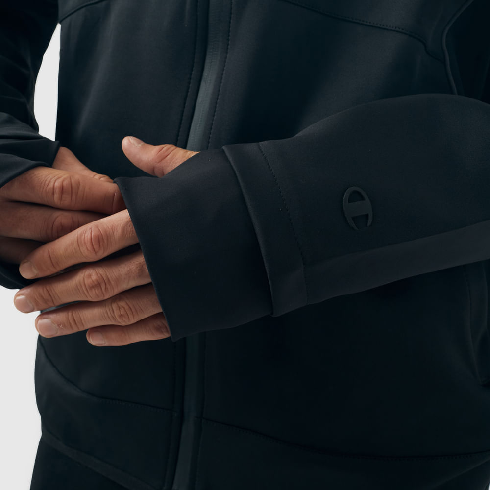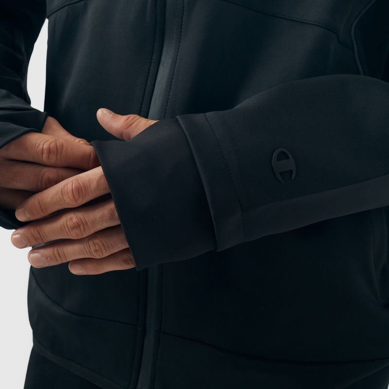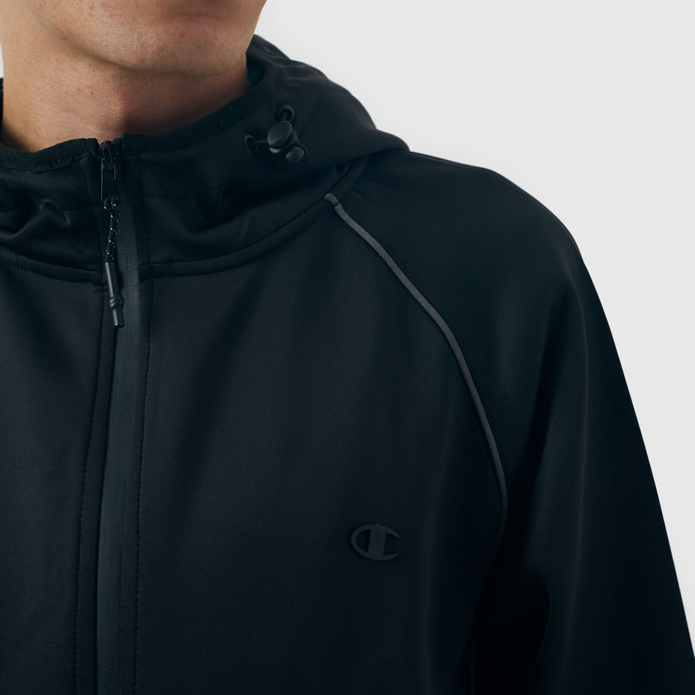 A jaqueta Champion possui modelagem regular da linha active e é confeccionado em malha mista de spandex e poliéster com alta gramatura (300g). O logo é em silk no peito, e o icônico na manga assegura a autenticidade da peça, complementando seu design.