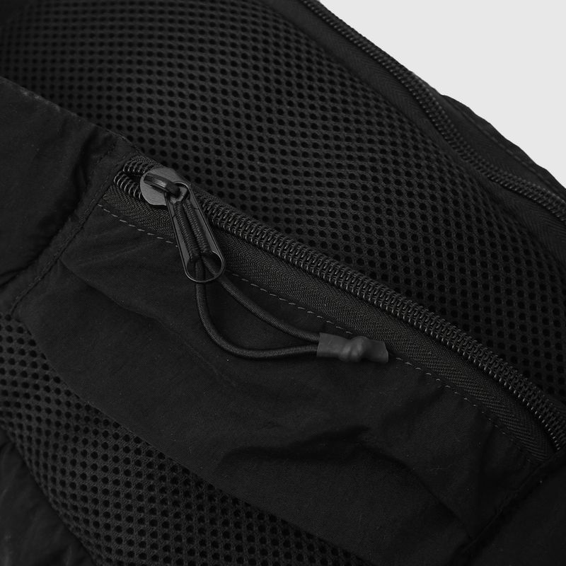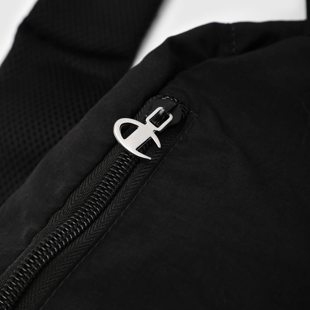 A Slingbag tem capacidade de 1,5 litros e é confeccionada em malha de poliéster. Ela vem com puxadores estilizados da marca, estampa em silk na alça, e o clássico patch C aplicado na parte inferior, que garante a autenticidade da peça.