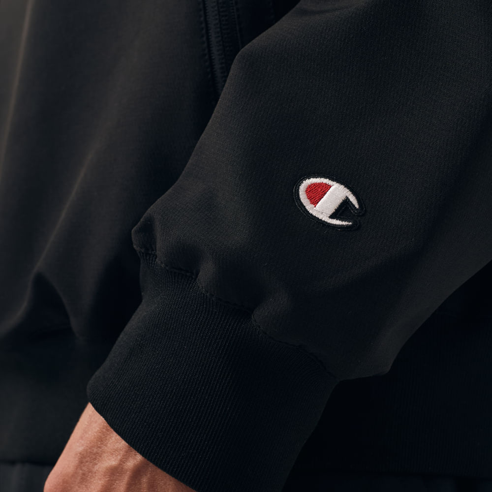 O moletom Champion possui modelagem regular da linha active e é confeccionado em malha mista de elastano e poliéster hidro-repelente. O logo é em silk no peito, e o icônico na manga assegura a autenticidade da peça, complementando seu design.