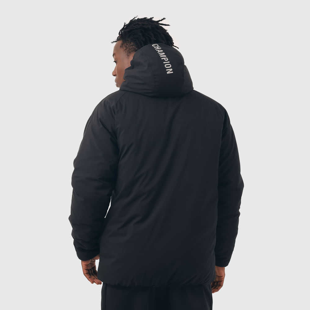 A jaqueta Champion possui modelagem regular da linha active e é confeccionado em poliéster . O logo emborachado no peito, e o icônico na manga assegura a autenticidade da peça, complementando seu design.